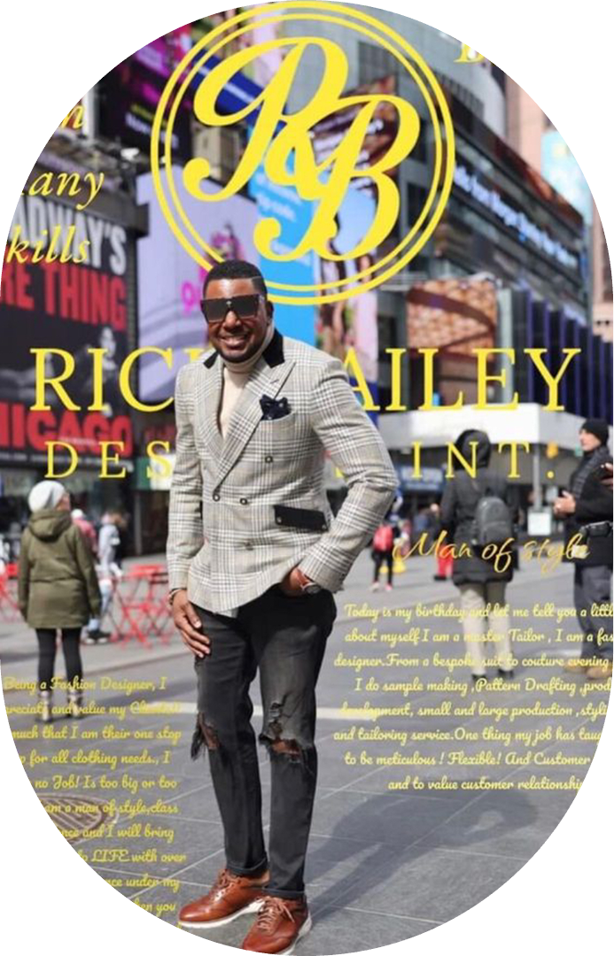 In 2013, Rick Bailey made the life-changing decision to migrate to the United States. It was then that he established Rick Bailey Design International. Upon arriving in the US, Rick connected with Angela Taylor, an experienced tailor from Italy in New Jersey who was looking to sell her tailor shop. Recognizing the opportunity, Rick purchased the shop, promising to preserve Angela's legacy while pursuing his dreams as a designer. Within three months, he took over the tailor shop completely and rebranded it as Rick Bailey Design International .